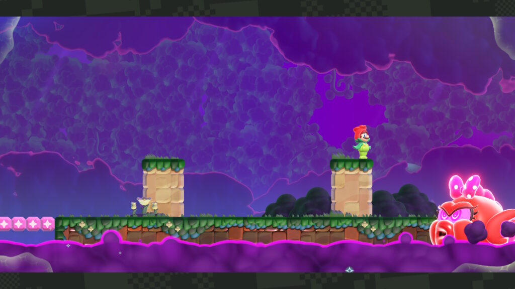 De basis van Mario Wonder is onveranderd gebleven, en dat is maar goed ook. De oorspronkelijke release wist al een balans te vinden tussen klassieke platformactie en onverwachte spelelementen via de Wonderbloemen. Dat fundament staat nog steeds als een huis.