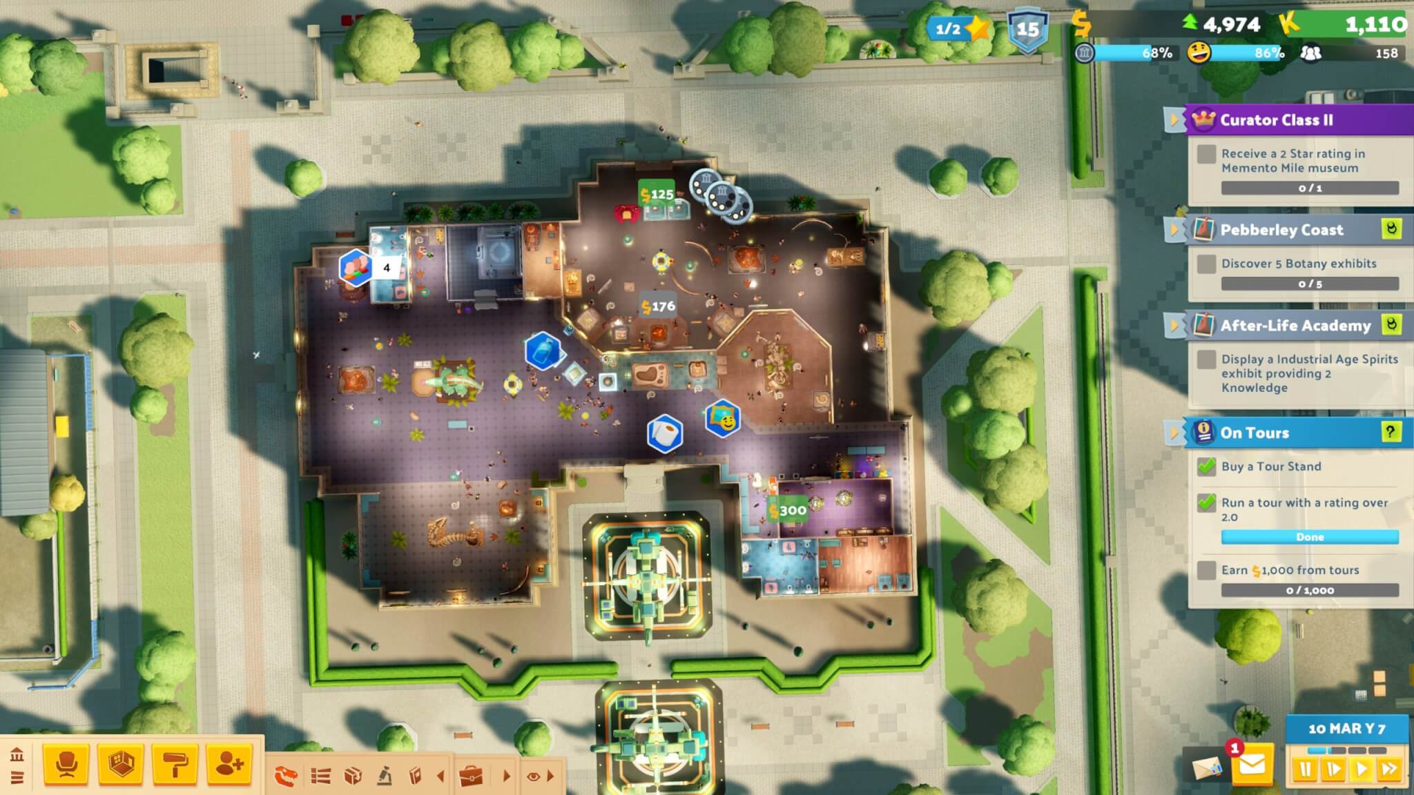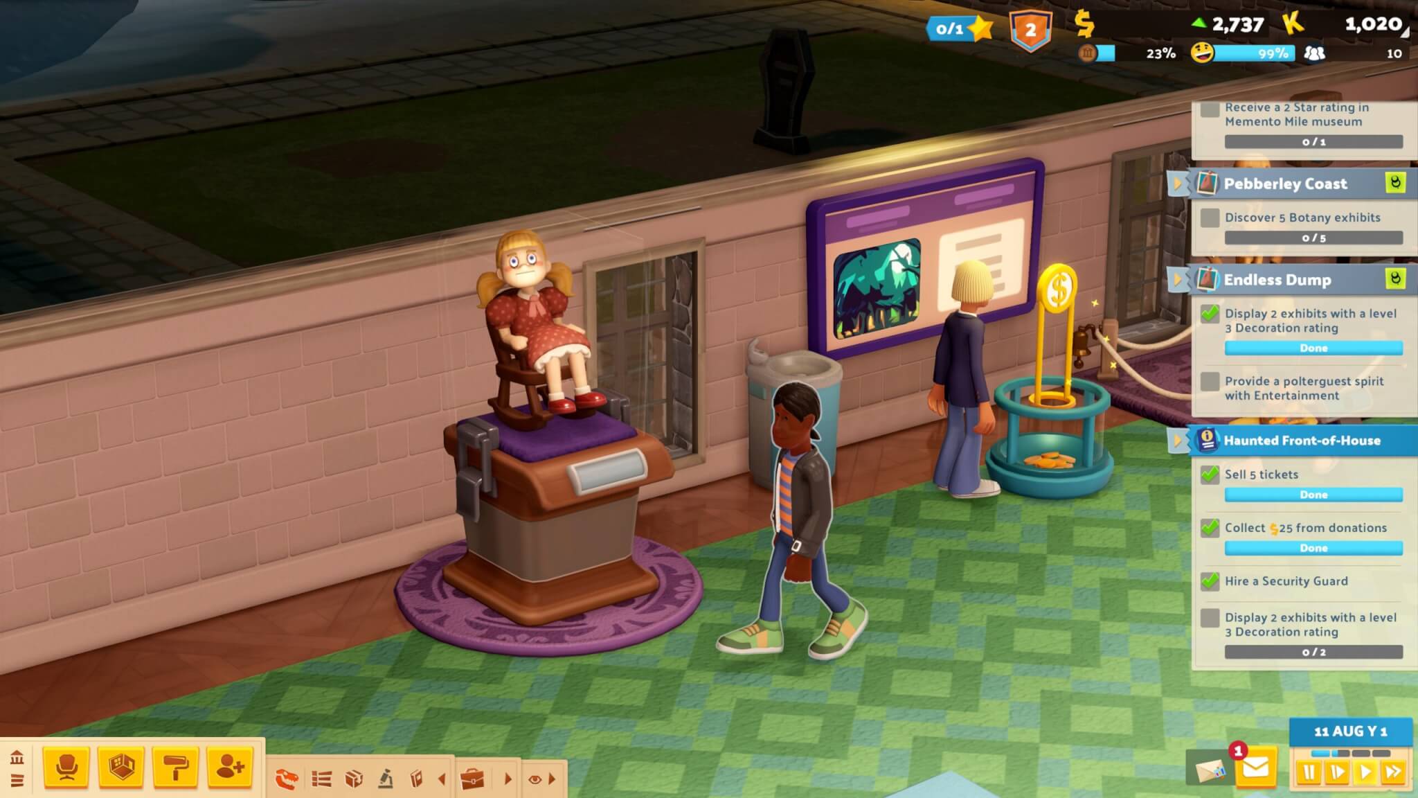 Het Bovennatuurlijke museum is nog net iets uitdagender: hier moet je kamers bouwen voor spoken, elk met unieke wensen en voorkeuren. Dit puzzelwerk zorgt voor een frisse uitdaging die goed past bij de relaxte gameplay. Daarna volgen nog musea rondom wetenschap en ruimtevaart, die elk weer nieuwe verrassingen en gameplayelementen brengen.